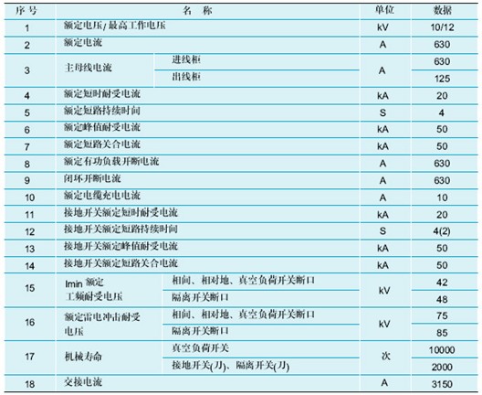 (此數(shù)據(jù)為FN12A或ISARC負(fù)荷開關(guān)配置)